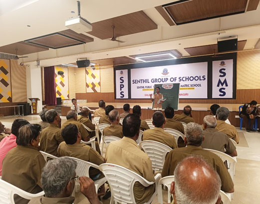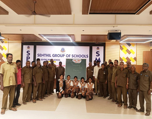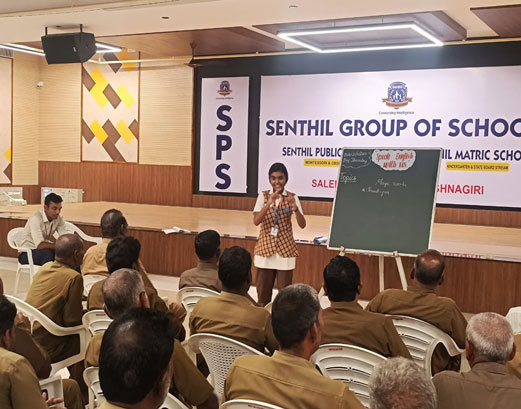 Activity - 3 Date : 20.11.2025 Day: Thursday Speak English with Us CONTENT: • The members of the Sherlock’s Club (English Club) of Senthil Public School, Dharmapuri has organised a Spoken English Programme named “Speak English with Us” for the school’s bus drivers and conductors. • The Basic English Grammar was taught to the drivers and conductors by our students that will be helpful to converse with the children travelling by the school bus. • Our students got the exposure of teaching and public speaking and also educated them about English Magic Words.
