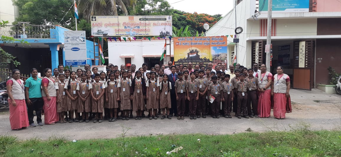 Activity 1 Hindi Club Outreach programme on 25/07/2025 (FRIDAY) – Indian Retired Soldiers Office, Dharmapuri. The children are provided with the practical insights of how communication and language are used in professional settings and bridging the gap between classroom learning and real world application. The children are inspired to be patriotic and got the career guidance from the retired soldiers.