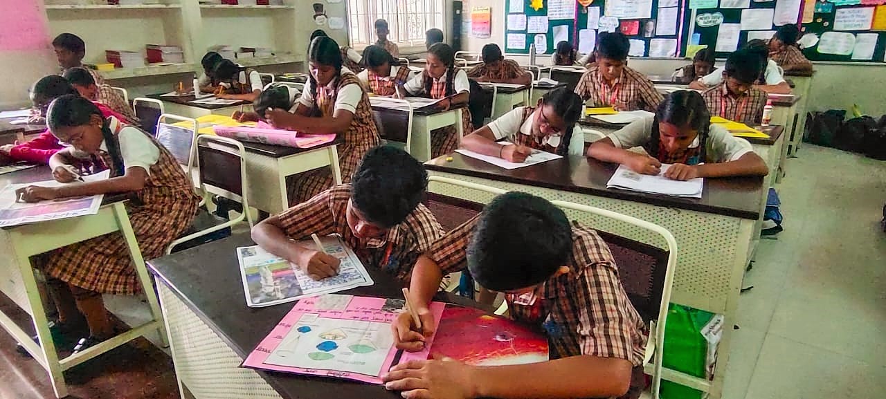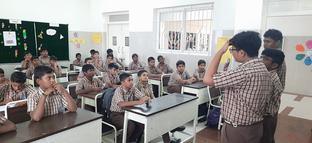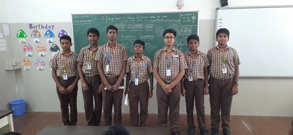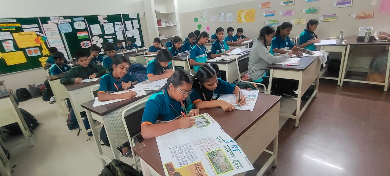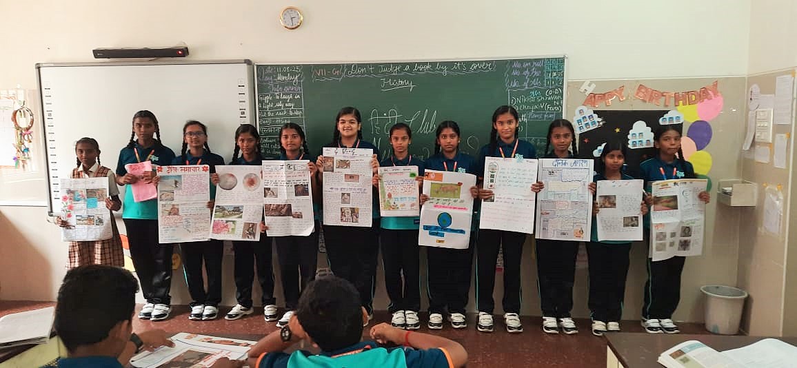 Activity 2: conducted on 11/08/2025 (MONDAY) - The Hindi Club of SPS, Adhiyamankottai organised an activity for the children to foster the skill of Newspaper Making by expressing through different parts such as news, articles, features, poetry, and cartoons. Through this activity, the children demonstrated their language abilities and sentence structure for journalistic writing, enabling them to successfully display their newspaper.