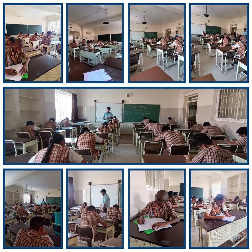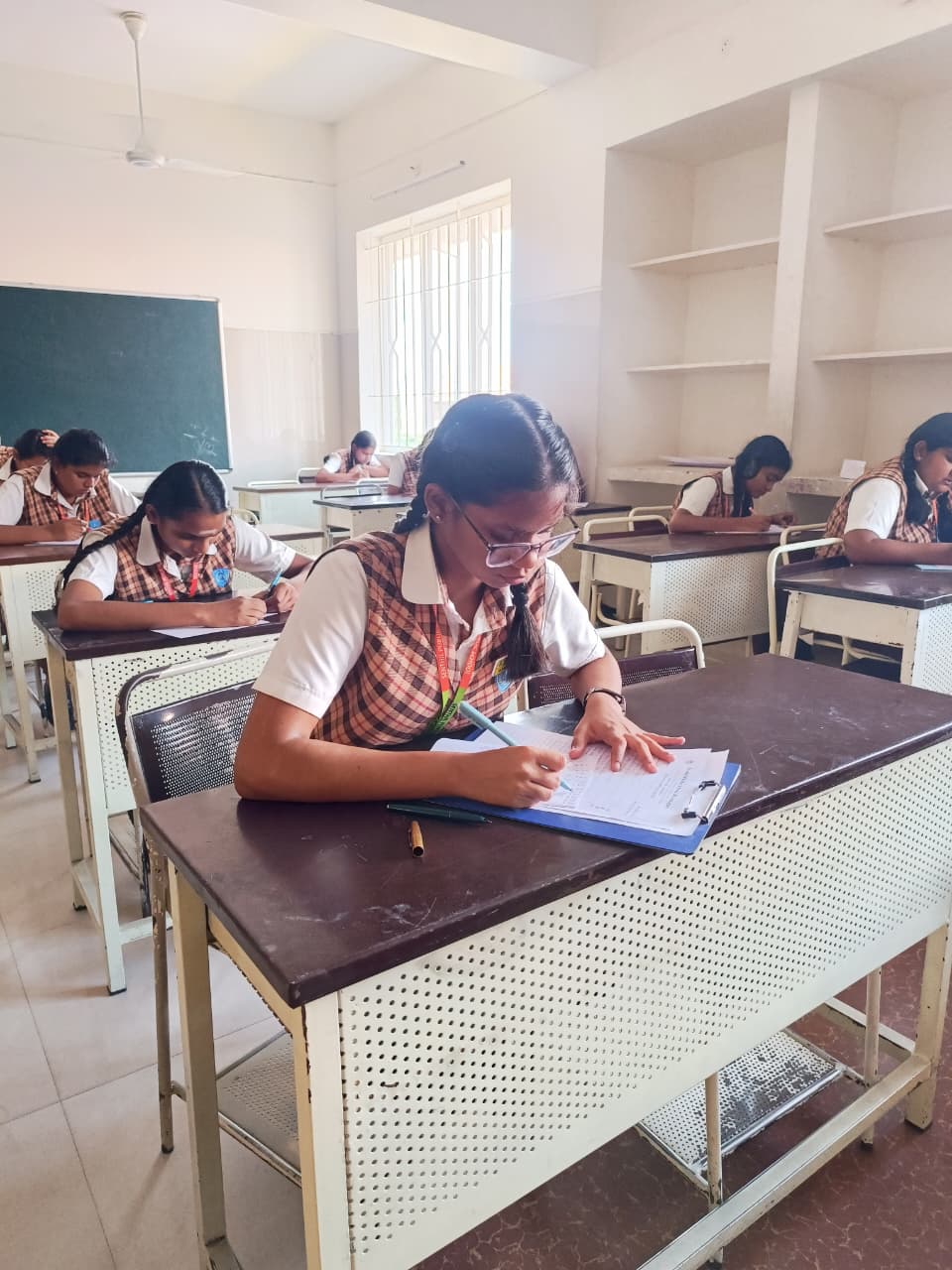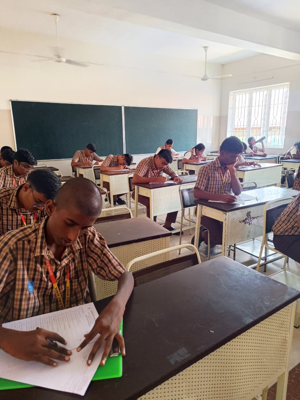 Activity 2 : MATH CLUB - COMPETITION conducted on 14.10.2025(Tuesday). Students of classes VI, VII, VIII, IX and XI from our school wrote pen and paper test includes 20 MCQs on arithmetic operations, number systems, basic algebra, geometry and logical reasoning. The purpose of this competition is to enrich the Arithmetic and Reasoning skills of the students. This competition also enhances the mathematical thinking of the students not only in academics but also in their competitive exams like Olympiads, NTSE, JEE and other exams.