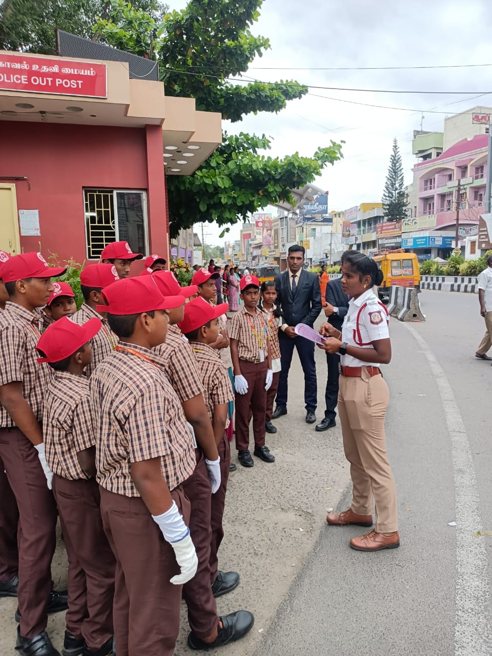 Activity 1 conducted on 28.07.2025 (Monday) – “Terrific Traffic Day” A Dynamic Drive for Civic Responsibility. With a resolute vision to instil civic awareness and deepen the understanding of road safety among students, the Road Safety Patrol (RSP) Club proudly conducted an orchestrate a vibrant and socially enriching initiative titled “Terrific Traffic Day.”